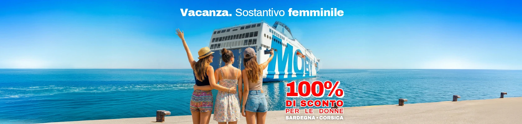 Per la Festa della Donna, Moby e Tirrenia vi offrono un regalo speciale: per prenotazioni dal 06.03.2026 al 08.03.2026, sconto del 100% sulla tariffa passeggero per un adulto, se accompagnato da almeno un bambino da 4 a 11 anni oppure da un secondo adulto pagante.